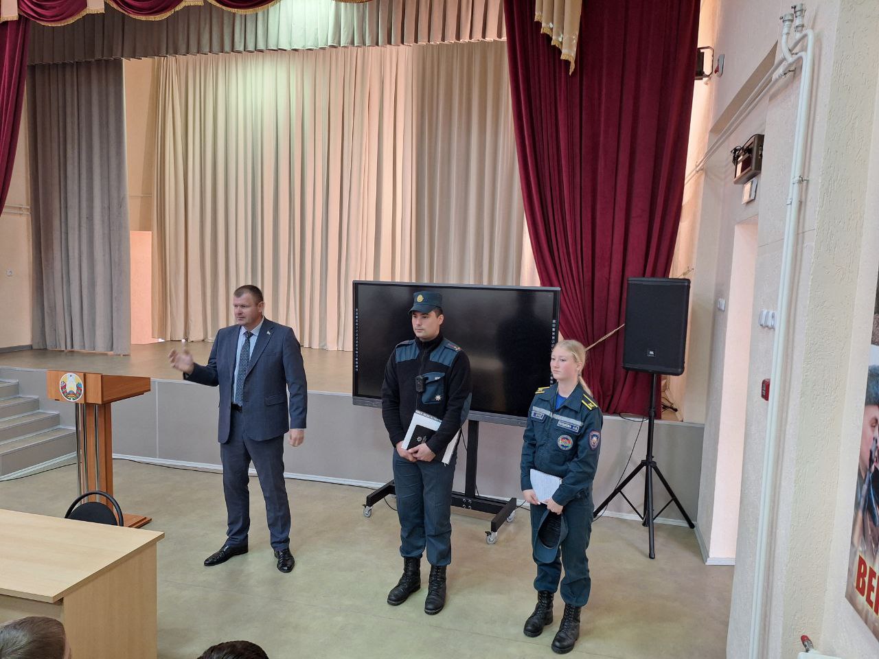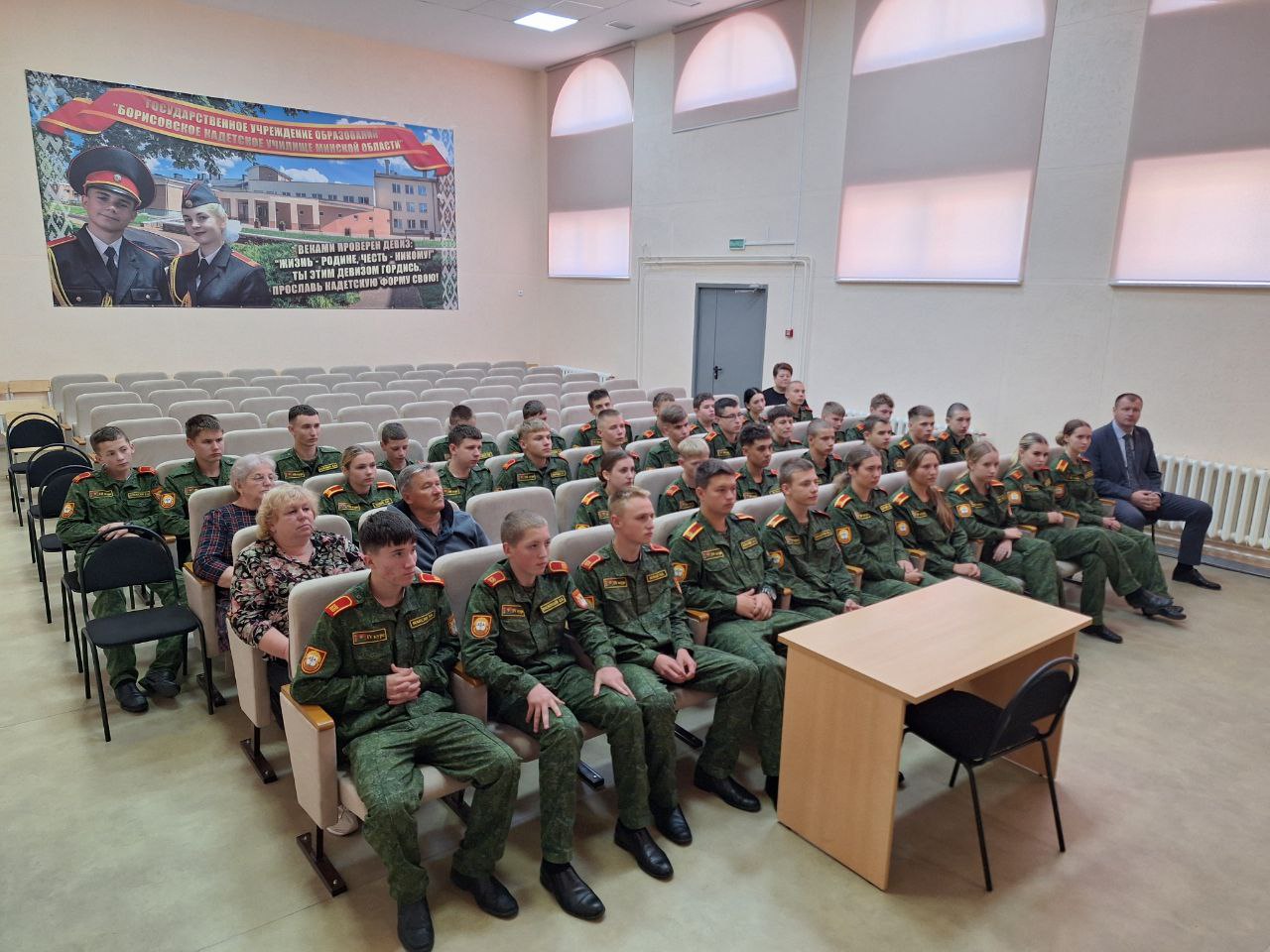 25 сентября 2025 г. в рамках Единого дня безопасности состоялась встреча кадетов 10,11 классов училища с инспектором сектора надзора и профилактики Борисовского ГРОЧС Зиновьевым Ильёй Сергеевичем и курсантом 4-го курса Университета Гражданской защиты МЧС Республики Беларусь Поздеевой Ангелиной.