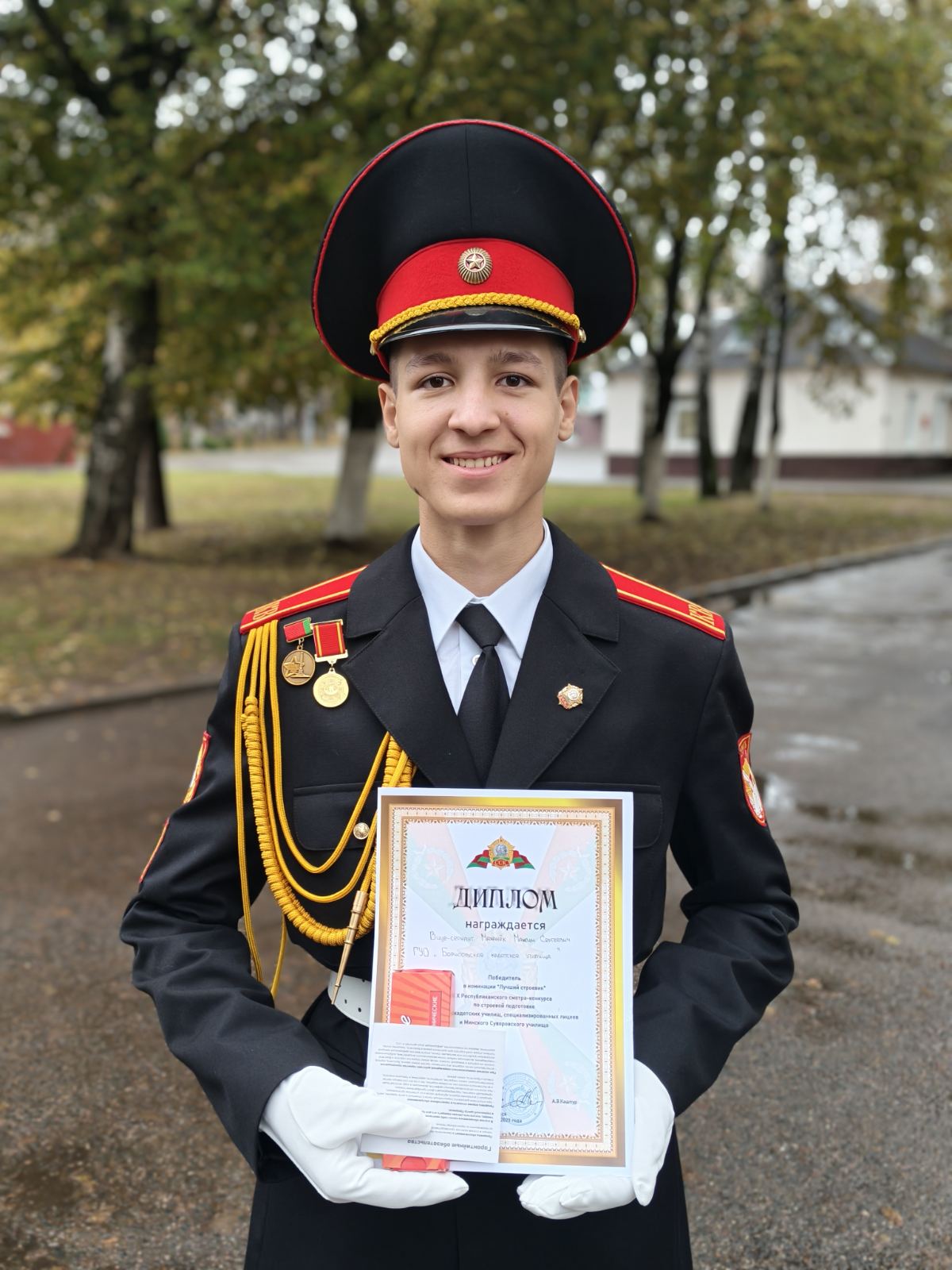 1 место в индивидуальном показе строевых упражнений завоевал кадет 4 курса 43 взвода Борисовского кадетского училища Маханек Максим. Поздравляем!