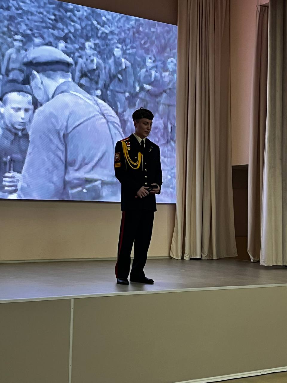16 декабря 2025 г. в актовом зале училища царила особая, трогательная атмосфера. В рамках Международного дня памяти жертв преступления геноцида состоялось мероприятие под названием «Дети войны», которое позволило кадетам не просто услышать о прошлом из учебников, а прикоснуться к живой истории.