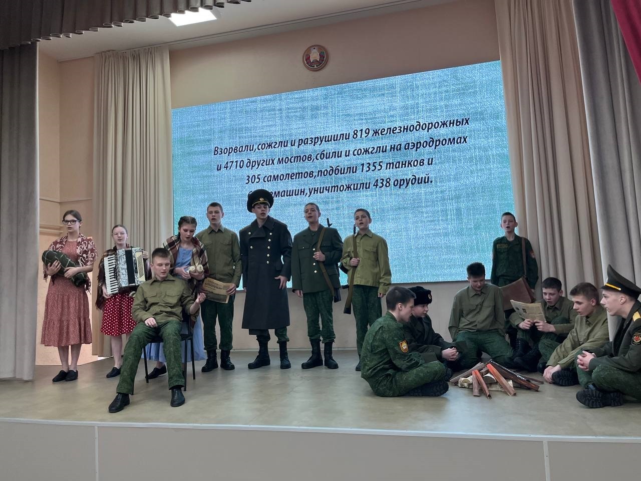 Зрители увидели настоящие мини-спектакли. Кадеты тщательно продумывали детали костюмов, создавали декорации и сценические образы. Со сцены звучали пронзительные строки о любви к Родине, о мужестве и верности долгу. В инсценировках были и минуты тихой скорби у братских могил, и задорные фронтовые пляски под гармонь в минуты затишья, и драматические сцены проводов на фронт.