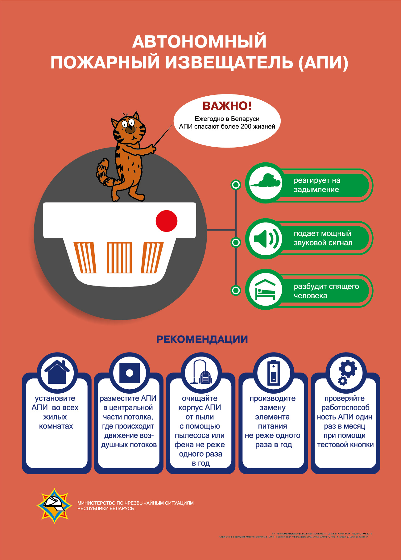 Автономный пожарный извещатель предназначен для автоматического и своевременного обнаружения пожара (задымления) и оповещения о нем. Спасатели МЧС настоятельно рекомендуют установить АПИ в каждой жилой комнате вашего домовладения (квартиры).
