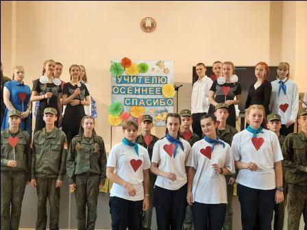 Поздравить педагогов приехали начальник 72 ОУЦ гвардии полковник Суров В.А., представители Белорусского союза офицеров. После был концерт ко Дню учителя, а после концерта лучшие кадеты приняли участие в митинге, посвященном 83-летию образования 72 Объединенного учебного центра.