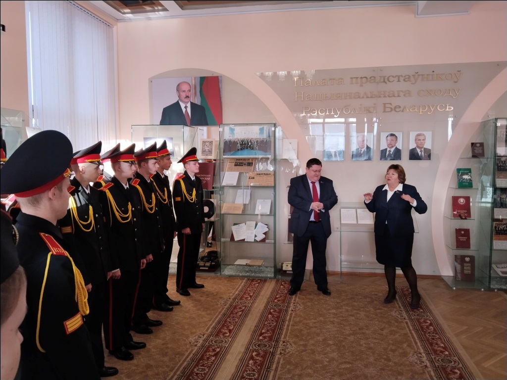 Данное мероприятие стало возможным благодаря хорошему человеку, депутату Палаты представителей Национального собрания VII созыва Ананич Лилии Станиславовне. Кадеты смогли познакомится с законотворческой деятельностью, задать самые разнообразные вопросы. Также для ребят была организована экскурсия в Белорусский государственный музей истории Великой Отечественной войны, а также посещение храма.