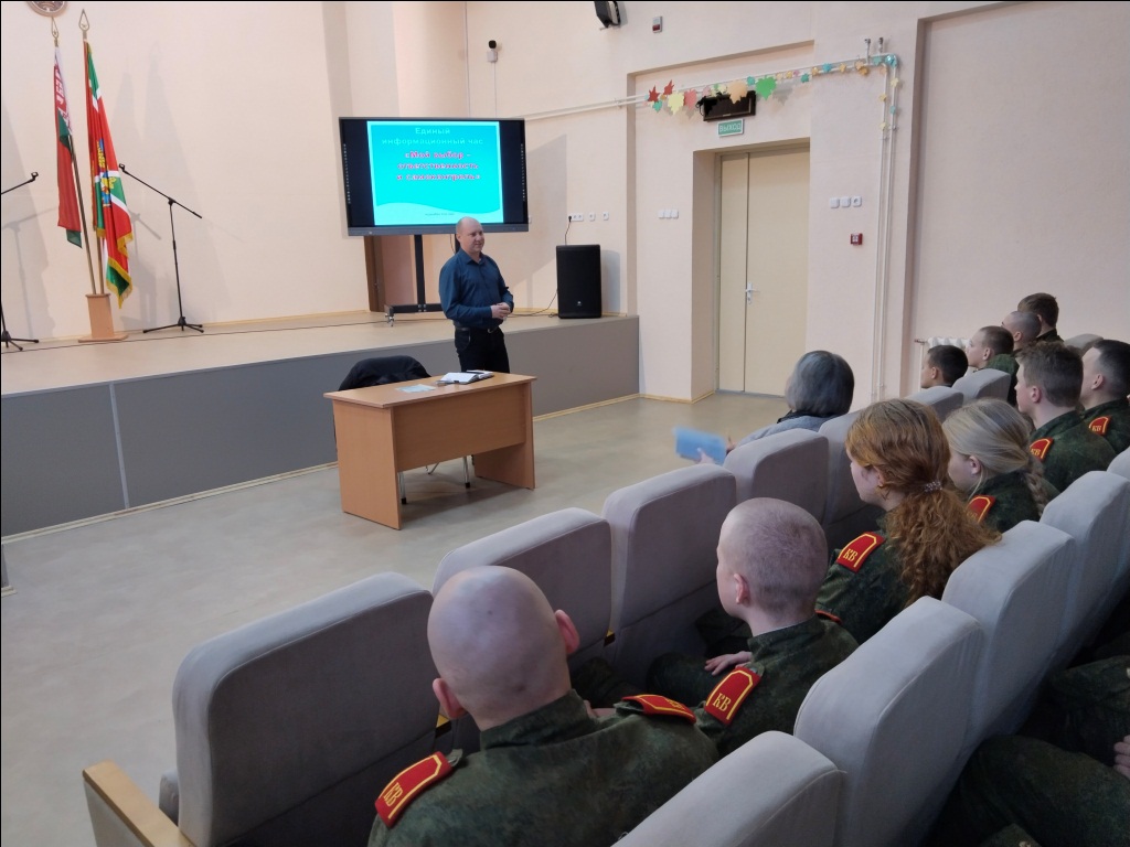 В государственном учреждении образования «Борисовское кадетское училище Минской области»14 декабря 2023 года прошел единый информационный час “Мой выбор – ответственность и самоконтроль”.