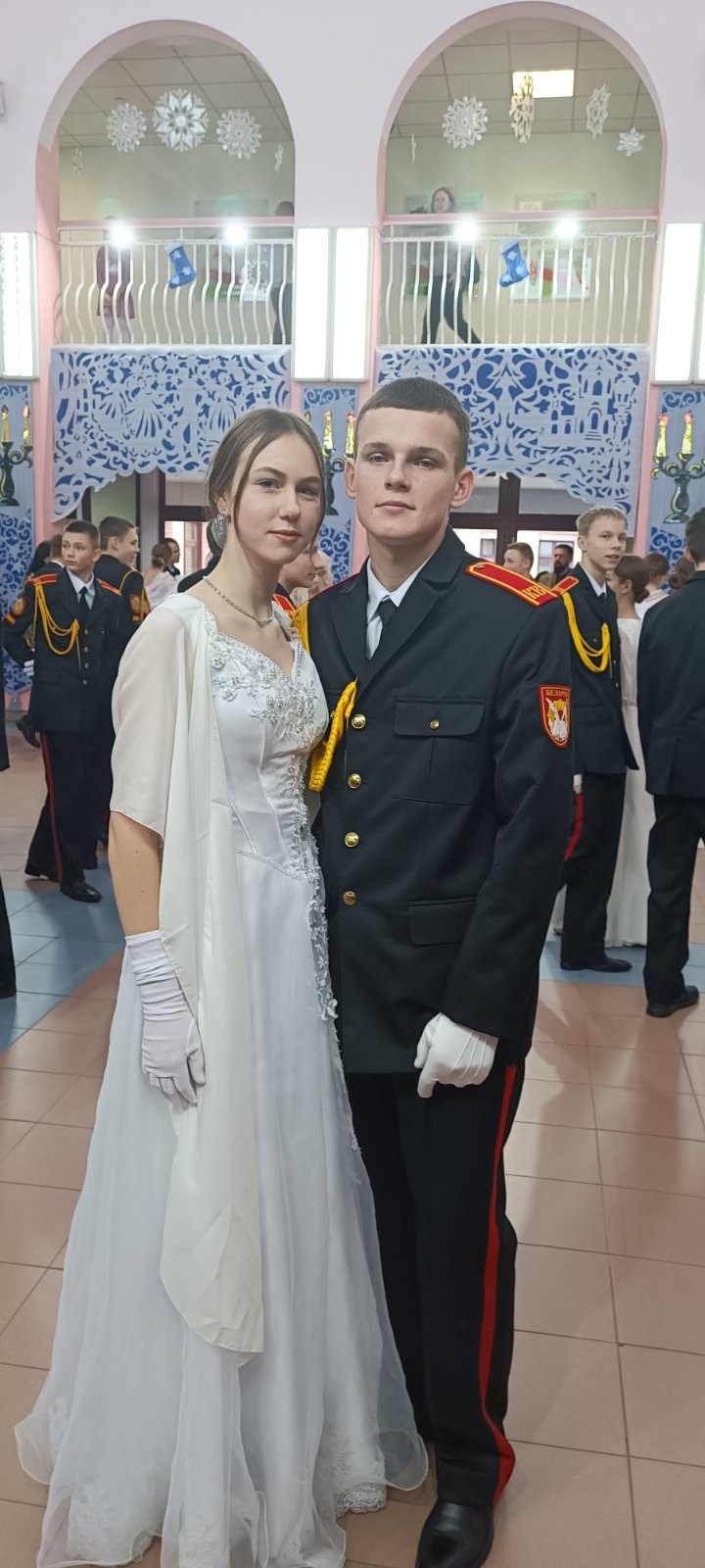 В этом году в числе 230 участников бала впервые были и воспитанники Борисовского кадетского училища Минской области. Кадеты готовились к новогоднему балу и специально для этого разучивали вальс, мазурку, кадриль и другие танцы.