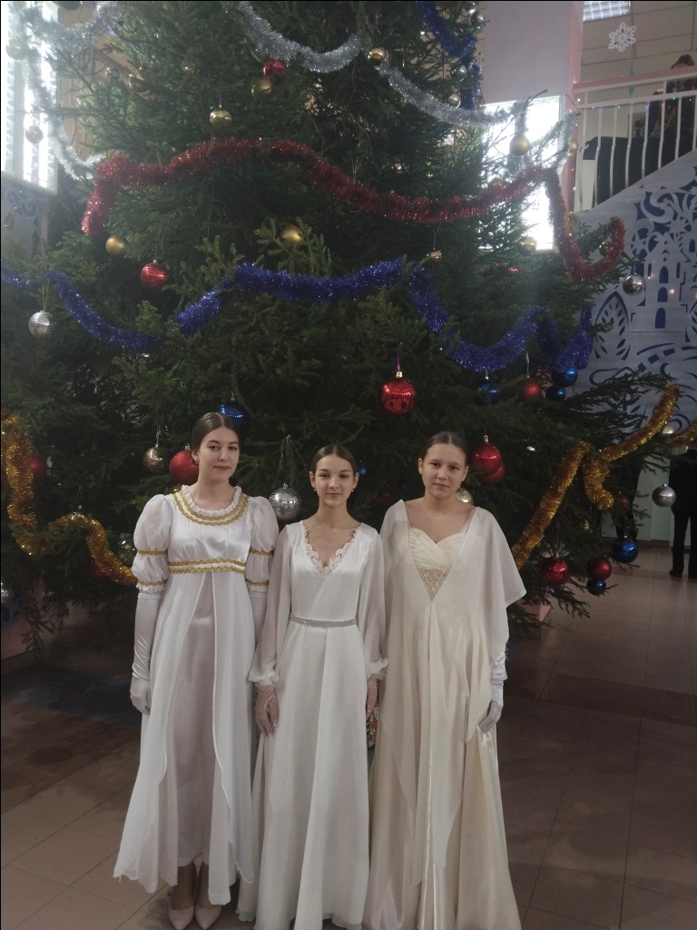Праздничную атмосферу создавали новогодняя елка, декорации, которыми был украшен огромный танцевальный зал, и, конечно же, музыка. Бал посетили традиционные новогодние гости – Снегурочка и Дед Мороз. Не обошлось и без сладостей к празднику: огромного торта и наборов конфет.