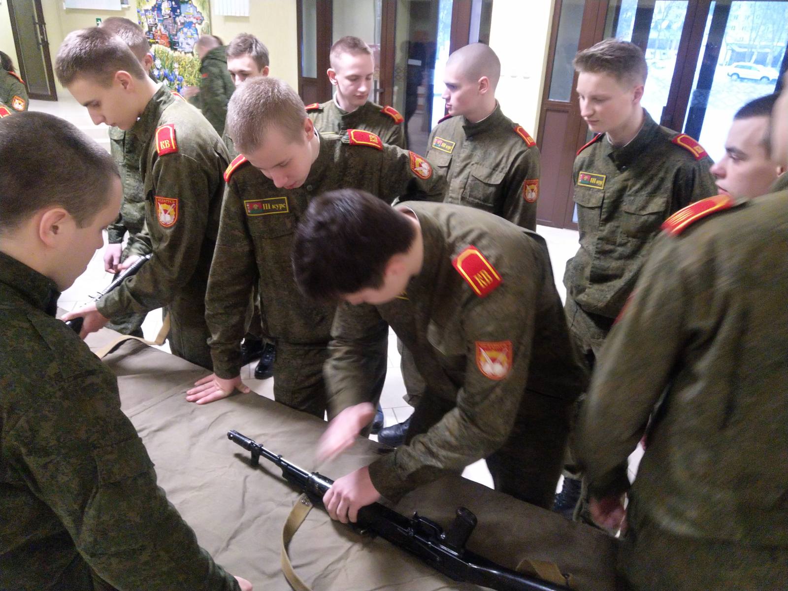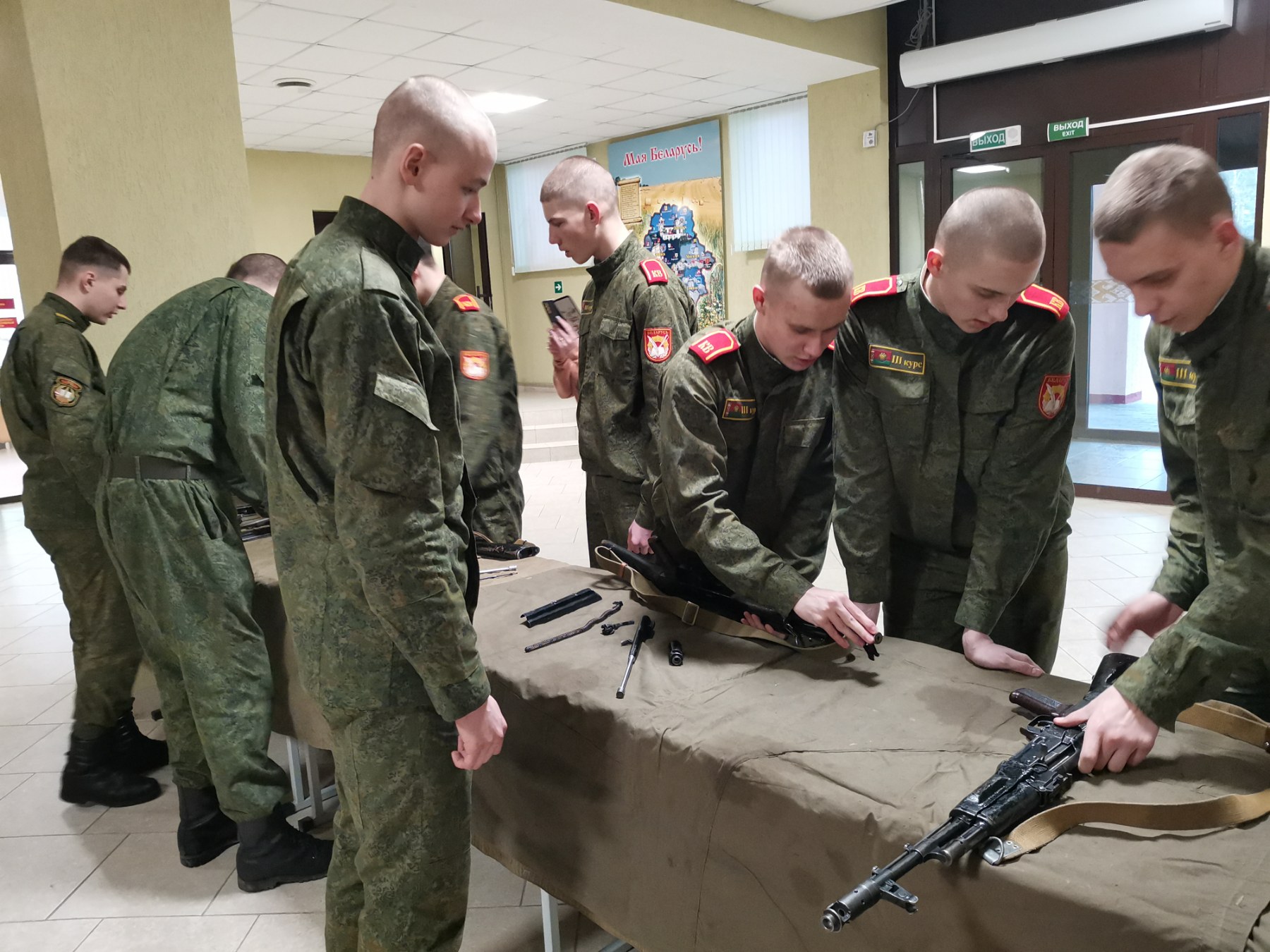 Поближе кадеты смогли познакомиться с учебными места «Разборка и сборка оружия АК-74», «Порядок снаряжения магазина учебными боеприпасами», «Изучение индивидуальных средств защиты от оружия массового поражения», «Оказание первой медицинской помощи», «Строевая подготовка». Так же им была продемонстрирована современная экипировка военнослужащего.