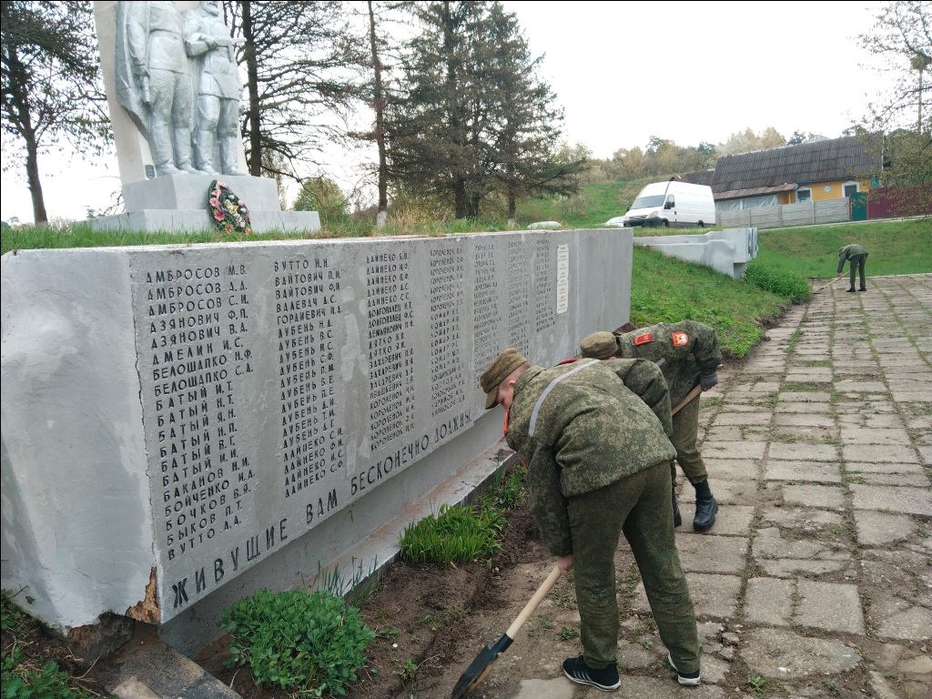 Ребята наводили порядок и благоустраивали территорию около памятника советским воинам в аг.Старо-Борисов.
