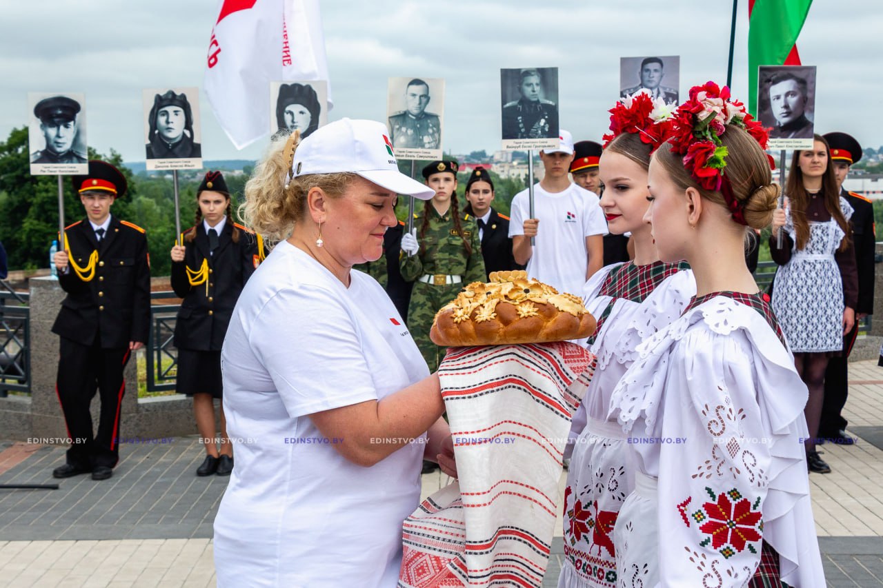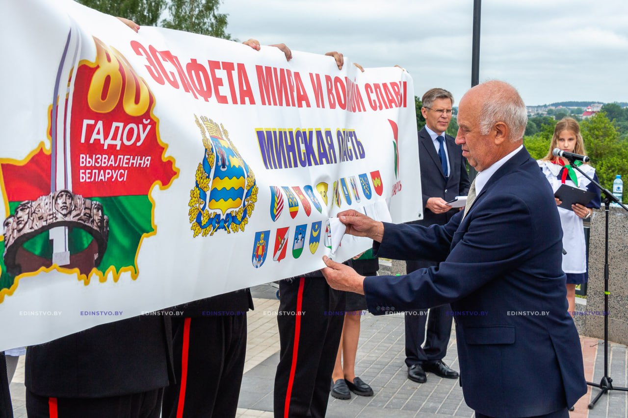 Стартовала эстафета 15 апреля (ровно за 80 дней до юбилейной даты) и до 3 июля должна охватить все регионы Минской области. Торжественное открытие акции состоялось в городе Солигорске.
