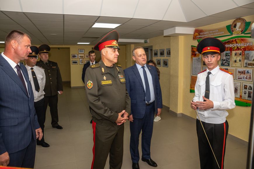 2 сентября 2024 г. в Борисовском кадетском училище Минской области прошла торжественная линейка, посвященная началу учебного года. Кадетов и педколлектив училища приехали поздравить высокие гости — Государственный секретарь Совета Безопасности Александр Вольфович, председатель Борисовского райисполкома Николай Карпович, депутат Палаты представителей Национального собрания Республики Беларусь Руслан Косыгин, командующий войсками СЗОК Александр Бас, начальник 72 ОУЦ ППиМС Вадим Суров.