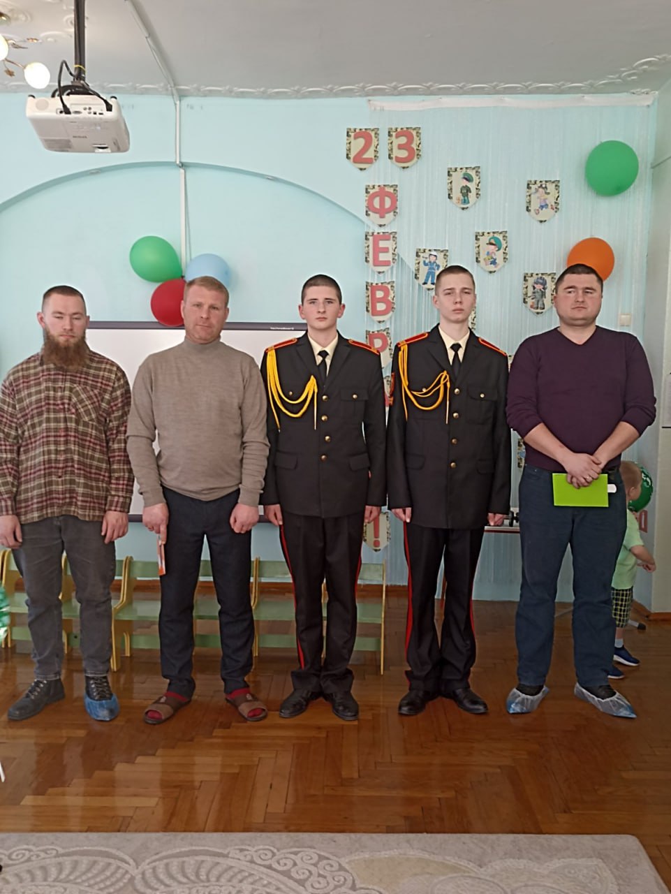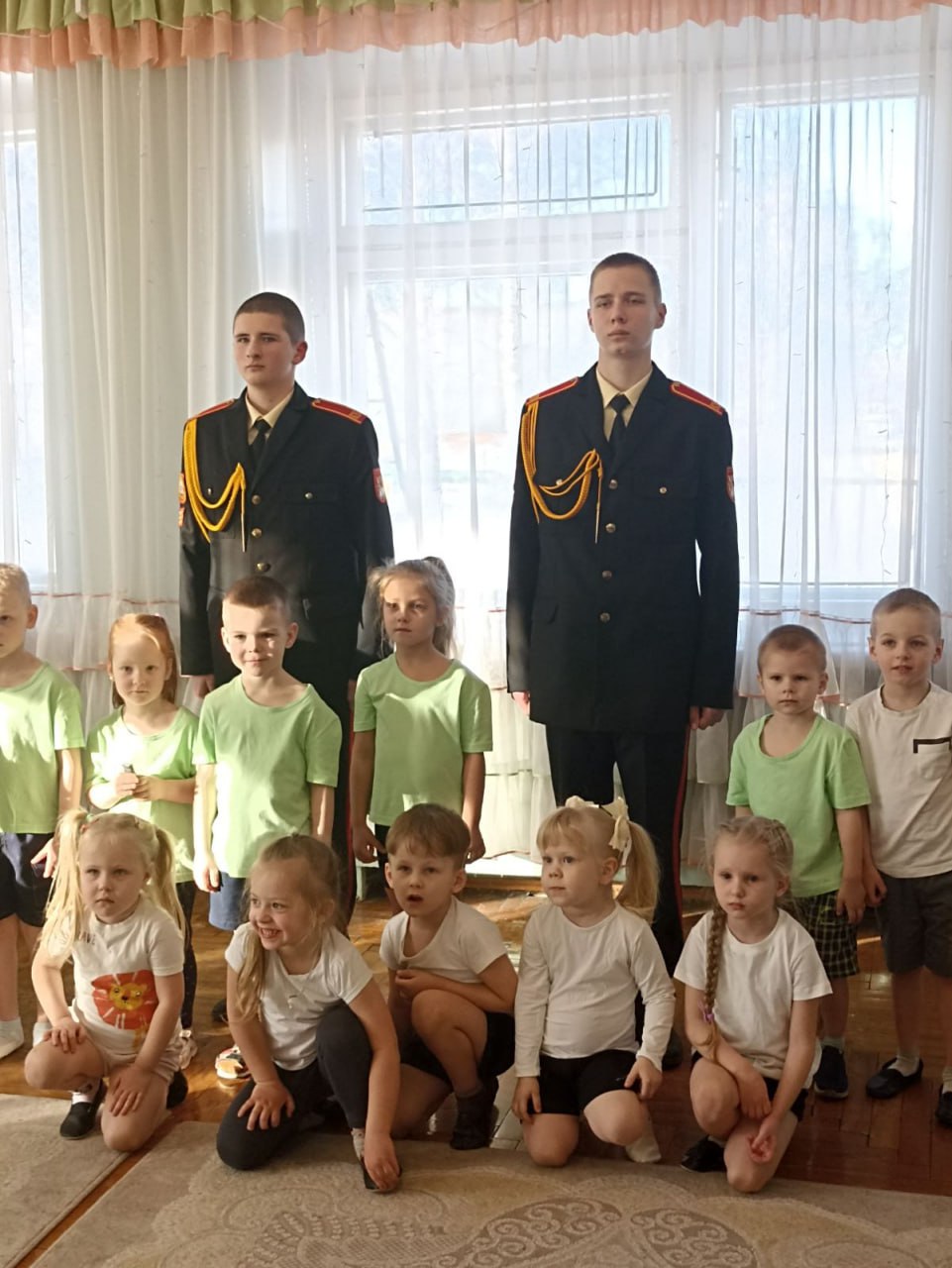 Кадеты Борисовского кадетского училища в детском саду №41 г. Борисова приняли участие в спортивном празднике с участием пап и дедушек, ветеранов вооруженных сил.