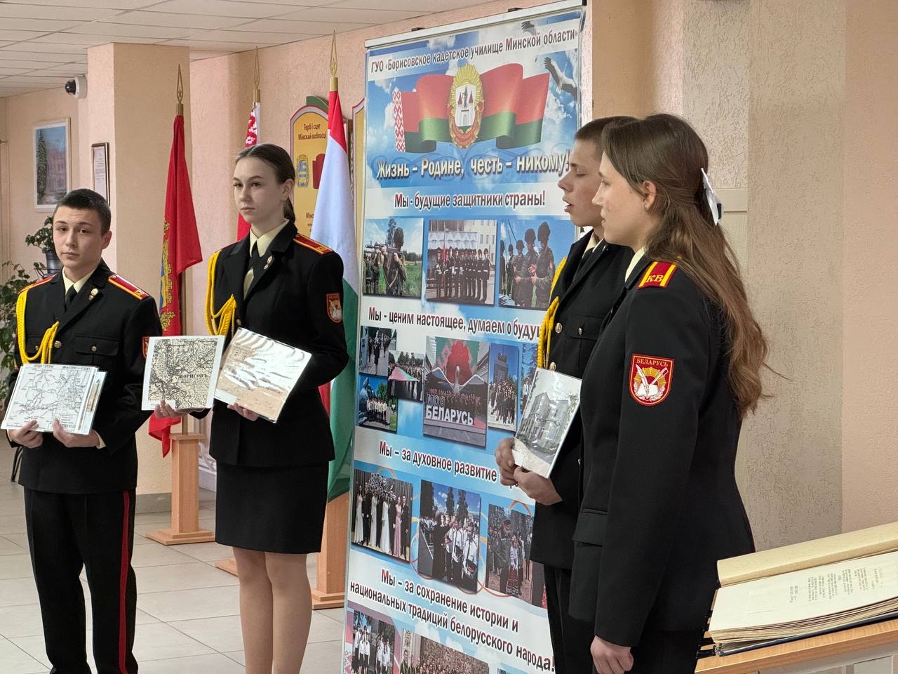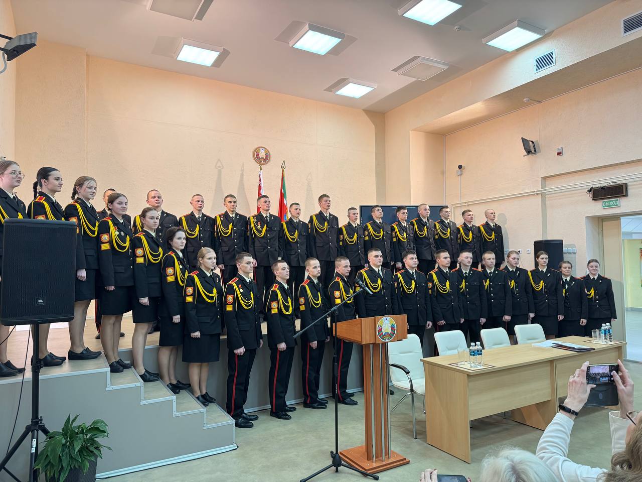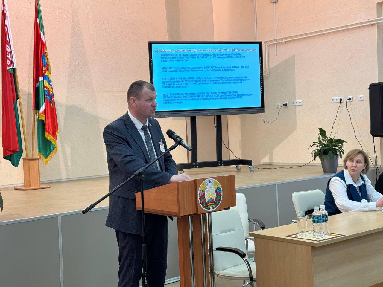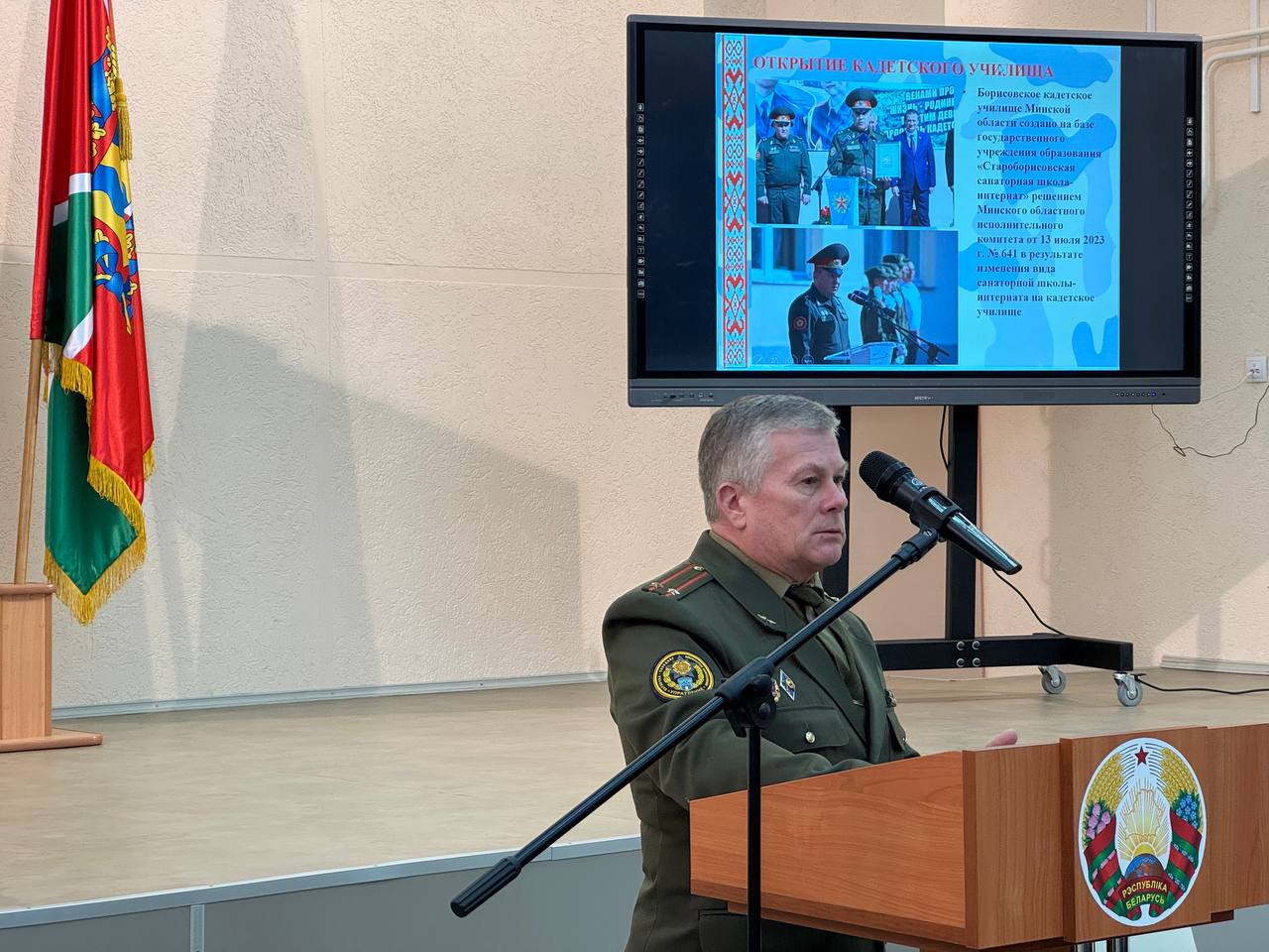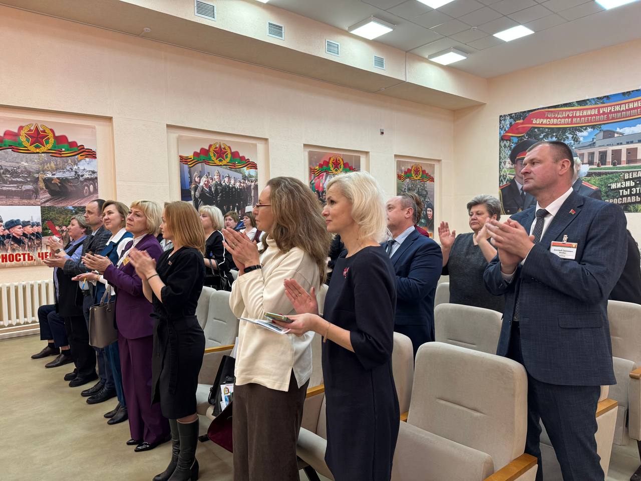 В актовом зале состоялась пленарная часть Совета, на которой Дмитрий Сергеевич и руководитель по военно-патриотическому воспитанию Бурлет Сергей Юрьевич презентовали опыт работ учреждения образования «Борисовское кадетское училище Минской области».