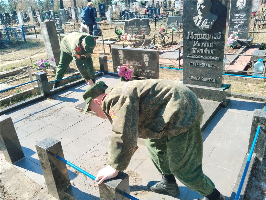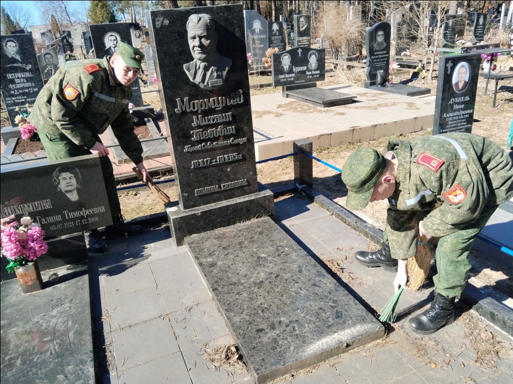 4 апреля кадеты 2 курса Борисовского кадетского училища приняли участие в уборке места захоронения Героя Советского Союза Мормулева Михаила Глебовича.