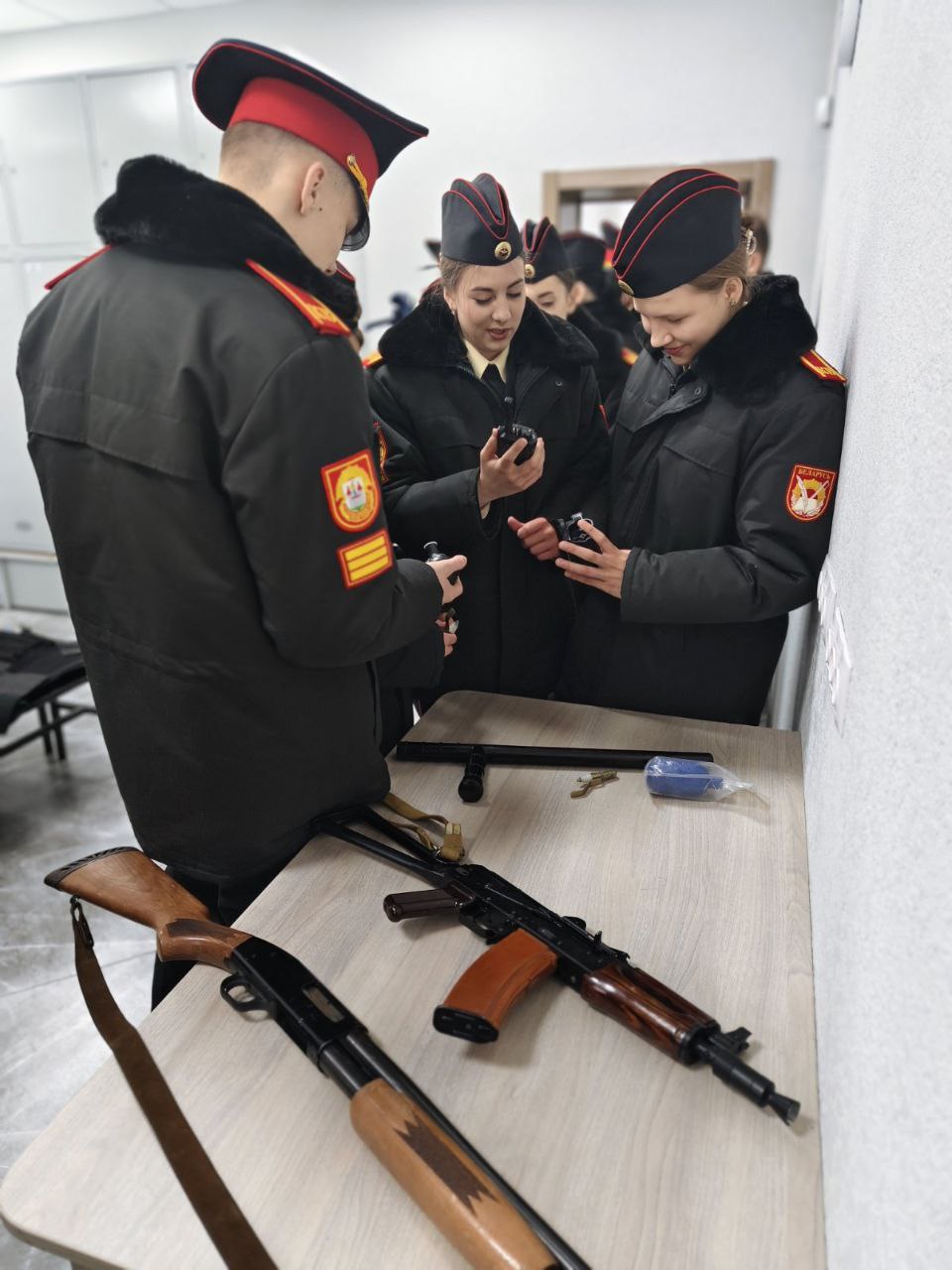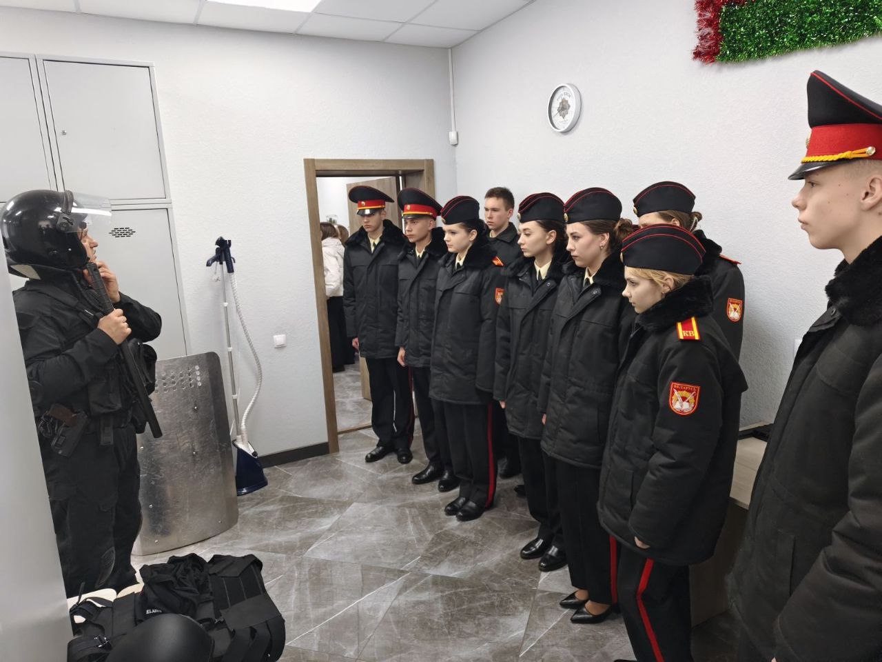Кадетам было продемонстрировано оружие и специальные средства, состоящие на вооружении в райотделе. У всех присутствующих была возможность детально рассмотреть и подержать в руках пистолеты и автоматы, примерить экипировку и прочувствовать вес щита.