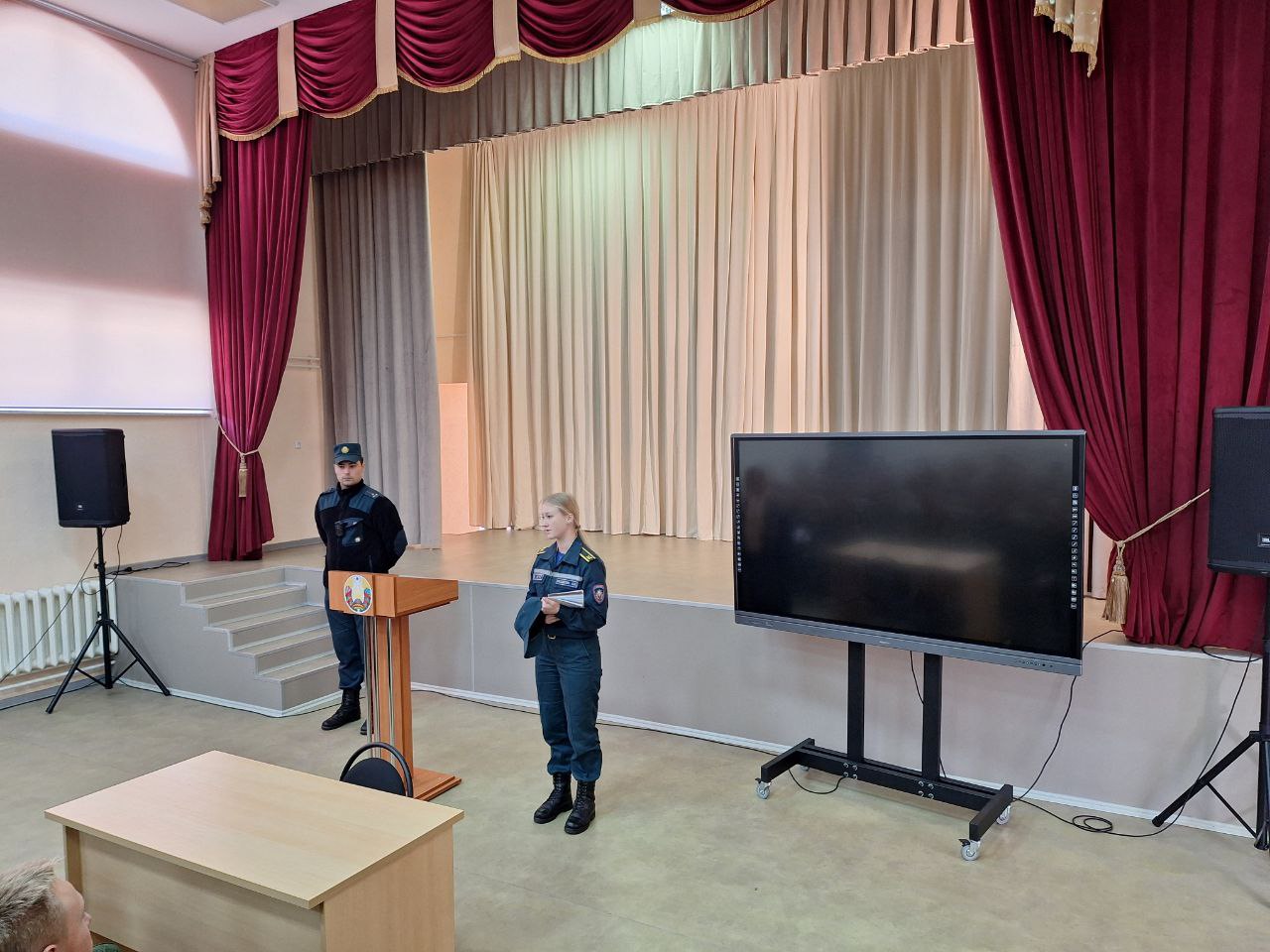 25 сентября 2025 г. в рамках Единого дня безопасности состоялась встреча кадетов 10,11 классов училища с инспектором сектора надзора и профилактики Борисовского ГРОЧС Зиновьевым Ильёй Сергеевичем и курсантом 4-го курса Университета Гражданской защиты МЧС Республики Беларусь Поздеевой Ангелиной.
