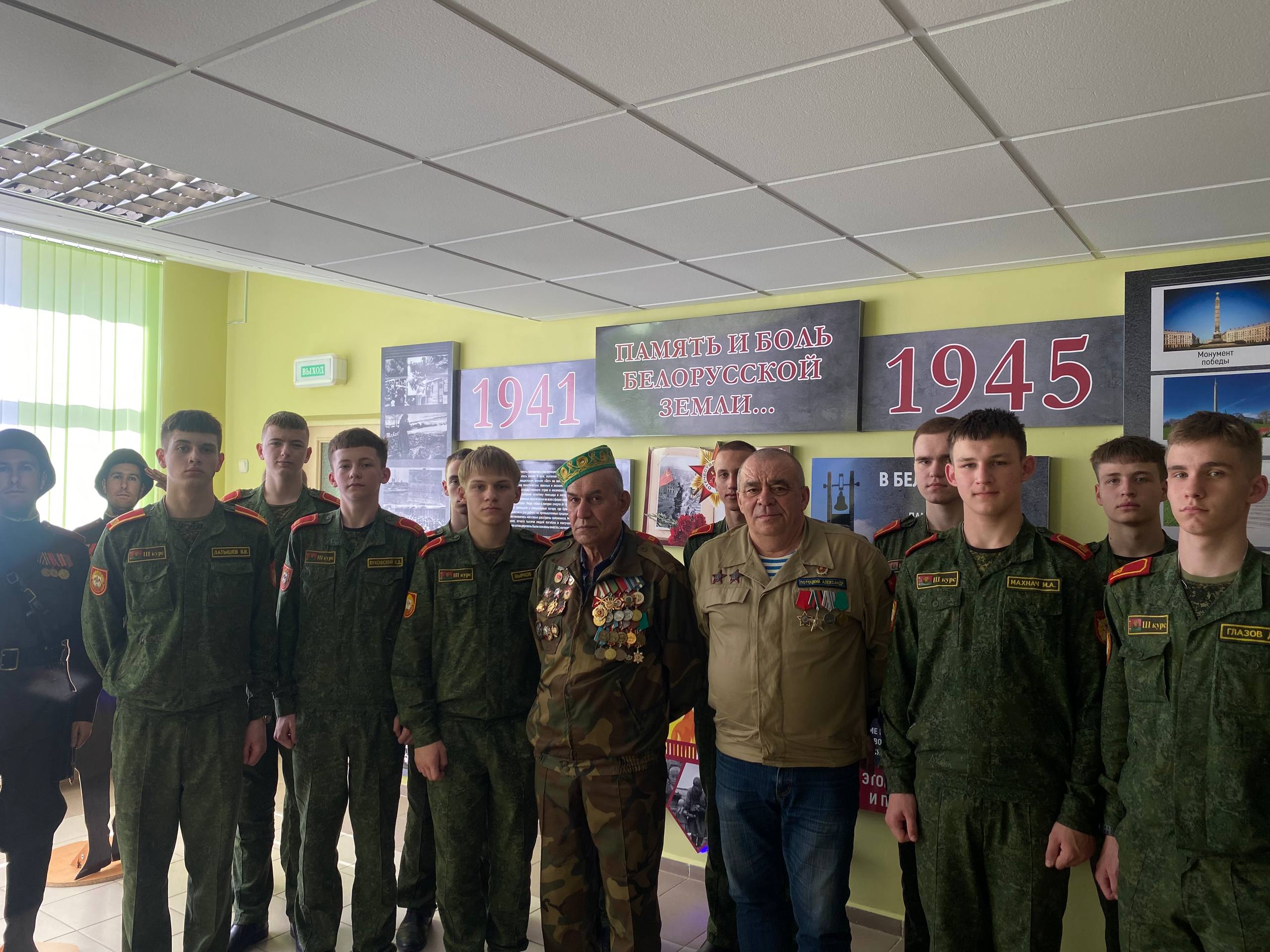 Музейная комната, где бережно хранится память о жертвах геноцида белорусского народа в годы Великой Отечественной войны, в этот день стала местом диалога трёх эпох. Гости рассказали кадетам о причинах ввода войск, о боевых буднях, мужестве сослуживцев и тяжести потерь.